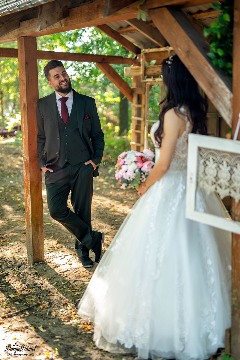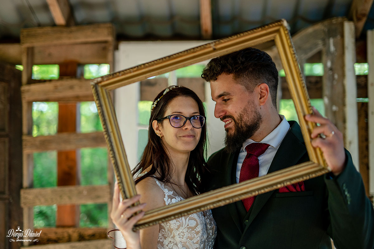 Hajnal és Norbi esküvője 2025. őszén Újhartányon volt. Az előkészületek és maga a lagzi a Vánkos & Eszcájg nevű helyen volt, míg maga a polgári ceremómiára és a kreatív fotózásra egy közeli, erdős részen került sor. Már régóta terveztem, hogy valamikor meg kellene csinálni a „dobozos” fotókat, így mikor a decemberi első találkozásunk során felvetődött ennek ötlete, nagyon megörültem. Bár nem volt könnyű kivitelezni, főleg az utómunka volt nagyobb feladat, de a végeredményt látva, azt mondhatom, hogy megérte. :)